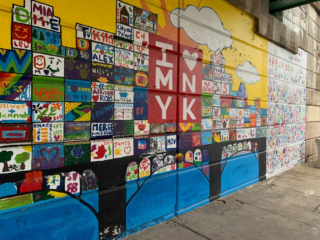 The last Mural I saw was this one underneath a bridge by my house. This mural was started by SplashLab Arts. SplashLab Arts is a Montessori inspired art center in East Falls, Pennsylvania. SplashLab’s goal is to offer fun and creative arts experiences to all children and families. What is unique about this mural is that it is an active public art presence in the Philadelphia community. SplashLab Arts joined forces with The Manayunk Development Corporation to create a “collaborative community mural” that encourages people in the area directly contributed to. So in this case there is not one specific artist as many citizens of the community have added there own unique touches to the mural.